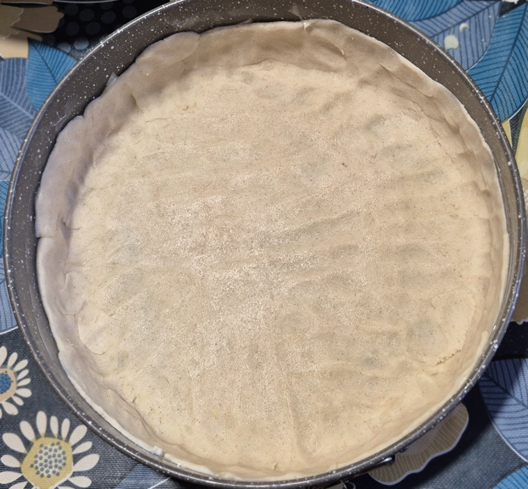 Stendi ora l’altro pezzo di brisée e fai il tappo alla torta.