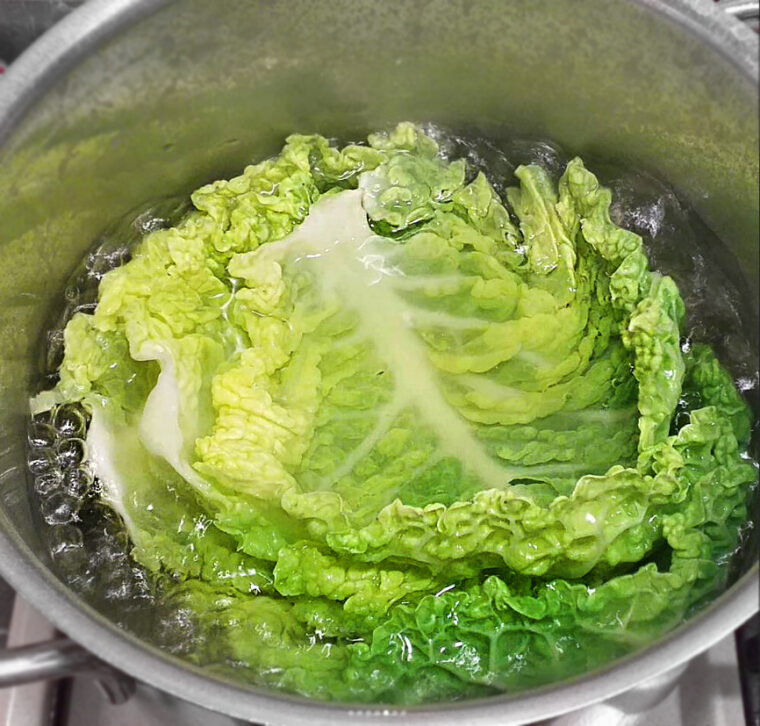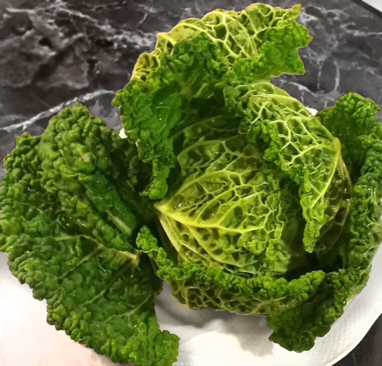 Nel frattempo togliamo tutte le foglie del cavolo verza e laviamole con attenzione.