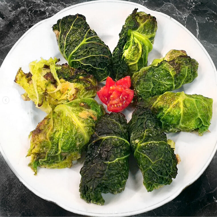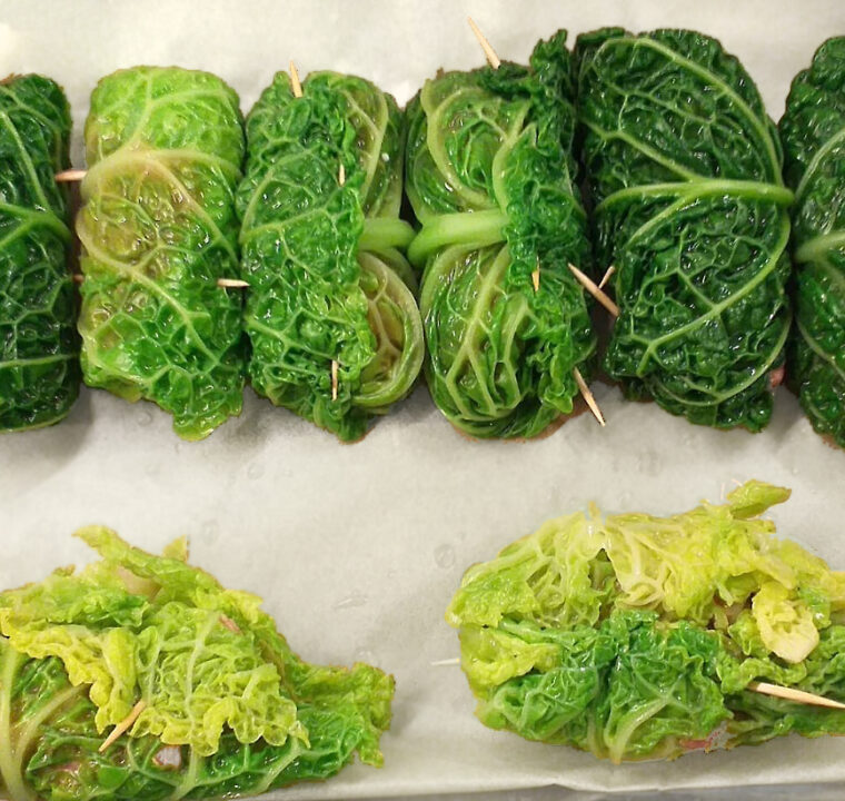 Riponiamo gli involtini di cavolo verza e carne in una pirofila e cospargiamoli di olio evo.