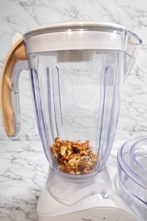 Sgusciatele e mettetele in un frullatore.Frullate fino a quando non avranno raggiunto la consistenza che preferite.