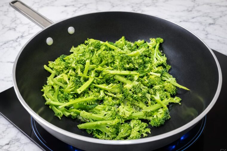 Lavate bene e tagliate i broccoli grossolanamente ed uniteli alla cipolla che nel frattempo si sarà dorata.