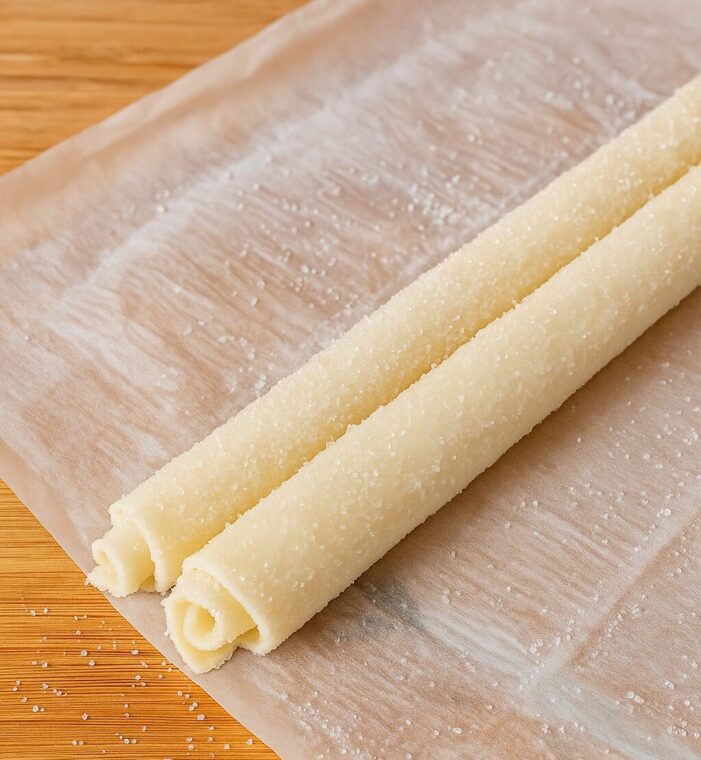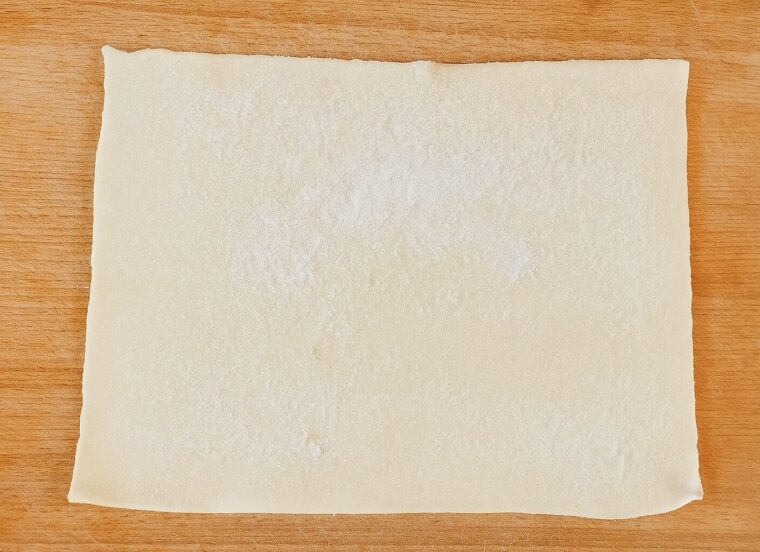 Srotola la pasta sfoglia e cospargila di zucchero su entrambi i lati.
