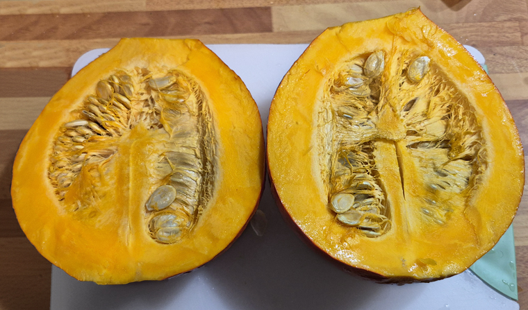 2. Lavala molto bene e poi apri la zucca a metà.